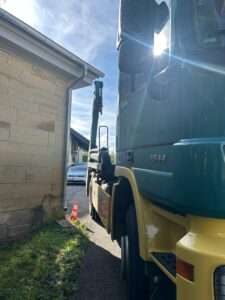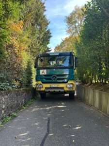 Durchfahrtshöhe beachten: Achten Sie auf Hindernisse wie Bäume, Äste oder Leitungen die den LKW bei der Zufahrt zum Containerabstellort behindern. Eine Durchfahrtshöhe von mindestens 3,80 Meter ist erforderlich.