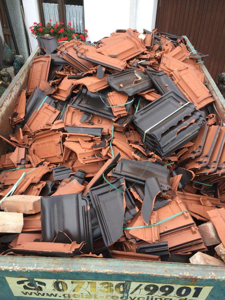Bei der Entsorgung von Dachziegeln aus Ton ist eine saubere Trennung der Ziegel in einem separaten Container besonders wichtig da Tonziegel nur hochwertig verwertet werden können, wenn keine Fremdstoffe oder andere mineralische Störstoffe enthalten sind. Ziegel aus Beton hingegen können aufgrund der enthaltenen Zuschlagstoffe leider meist nicht wie klassischer Betonabbruch verwertet werden weshalb in einem Container für Betonziegel auch Mörtel vom Dachfirst enthalten sein darf. Dies ist bei einem Container für Tonziegel nicht zulässig.